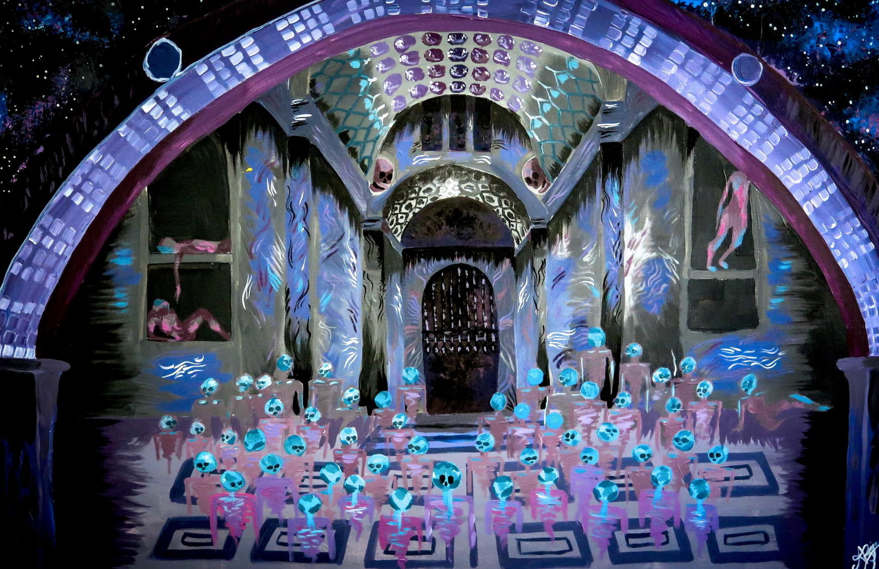 To be Iconoclastic is to be characterized by an attack on cherished beliefs or institutions. This darkened reflection of Raphael’s School of Athens shows just that: what was once an elite invitation to a room filled with the greatest minds of the Western world has been swallowed and engulfed by dark thoughts of which none stick out particularly. Or maybe, what was once a school has become a graveyard.